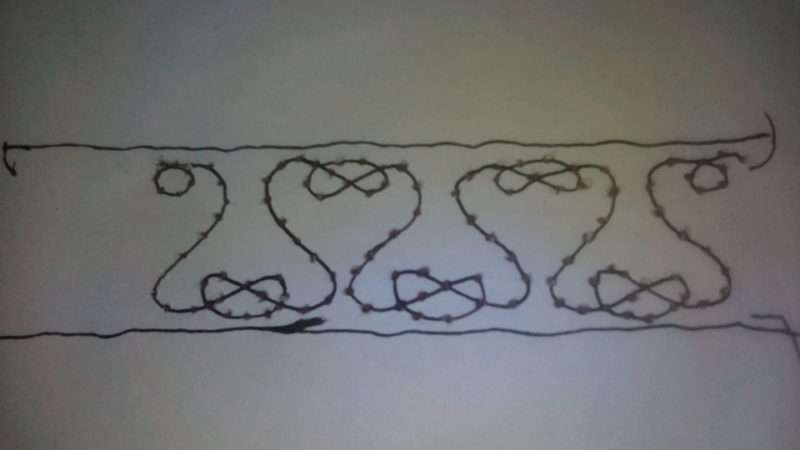 Теперь прибегнув к технике «шов — назад иглу», вышиваем узор.