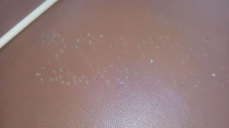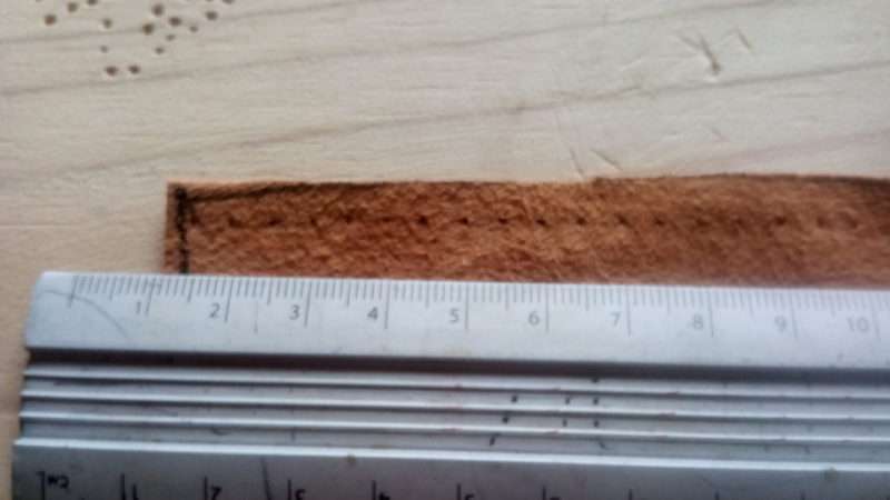 - Расстояние между отверстиями не должно быть меньше 2 мм, а если кожа взята из старой куртки или сумки, шаг увеличьте в два раза.