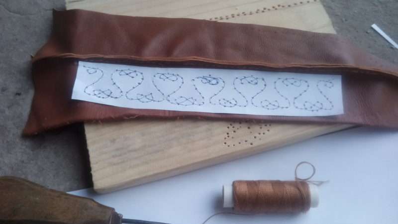 Как видим на фото, вышить на коже используя шило просто, главное немного терпения и все получится.